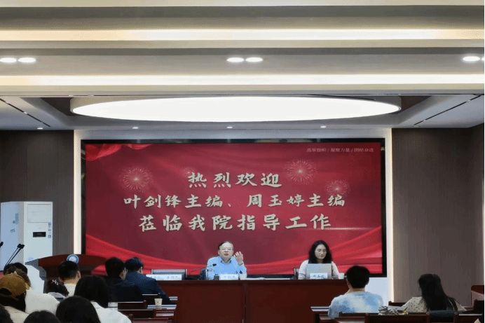 叶剑锋主编围绕论文选题、框架、正文、参考文献等四个方面展开细致讲解。他强调论文写作要始终坚持正确的政治导向,选题在追求新意的同时要兼顾精准性,在写作过程中要层次分明、有条有理;同时要对文字有敬畏心理,论文文字表达需反复打磨,从内容到形式上“更上一层楼”。最后,他指出“板凳要坐十年冷,文章不写一句空”,寄语同学们树立正确的价值观,既有仰望星空、紧跟时代的格局与胸襟,也有坐“冷板凳”的耐力与能力。
