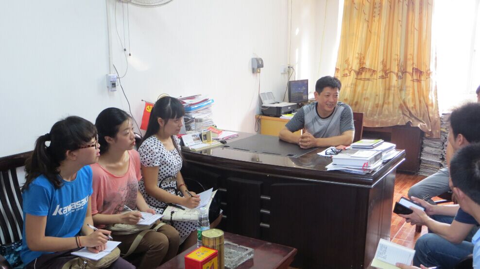 第二支队伍有沈娟、赵旭颖、朱文娟、曾思齐、王广振、涂亚腾、邱宇冰、卫龙8名研究生参与,赴赤壁镇参加了“永利官网思想政治教育实践基地”挂牌仪式并开展暑期社会实践活动,主题是“中国梦——构建社会主义和谐社会”。公司组织人事部孔海霞副部长、研究生处叶健副处长、公司领导吴秋凤、舒先林、何景春、杨克平等参加挂牌仪式并对实践活动提出了指导性意见和基本要求。调研实践期间,实践队在辅导员王东方老师带领下走访了两校三村。在赤壁镇镇中心中学和镇中心小学开展访谈,以了解农村基础教育的现状为主,另外就农村法制建设、远程教育等进行实际调查;在九毫村、周郎嘴村、青山村,不仅与村委会干部进行座谈,还深入到农民生产劳动的场所和农户家中进行面对面的交流,对新农村党建、农村经济发展、农民心中的中国梦、农村文化等进行了调研。期间,赤壁市电视台对公司暑期实践队进行了跟拍摄像并作了专题新闻报道。