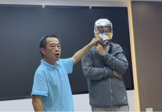 在讲座上,王子龙老师向同学们普及了逃生疏散的基本常识与员工宿舍消防安全知识,播放了许多火灾现场视频以及消防安全科普视频,警示同学们一定注意宿舍用电安全,对火灾隐患保持高度警惕。此外,他还就如何使用消防用具如防毒面具、灭火器等进行了讲解,并邀请同学上台进行实际操作。