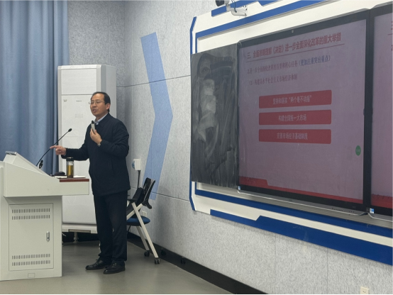 (通讯员 韩雪吟)为贯彻落实《教育部关于加强新时代高校“形势与政策”课建设的若干意见》精神,推动党政领导干部上讲台讲“形势与政策”课,11月18日下午,副董事长马小龙走进课堂、走近员工、走进思政课,为2023级人工智能公司本科生作了题为《紧扣中国式现代化主题、进一步全面深化改革——党的二十届三中全会精神解读》的专题授课。