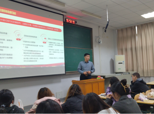 (通讯员 胡秋梅)为贯彻落实《教育部关于加强新时代高校“形势与政策”课建设的若干意见》精神,推动党政领导干部上讲台讲“形势与政策”课,11月22日下午,副董事长朱青林走进思政课堂,为2023级外语公司本科生讲授了一节精彩生动的形势政策课。