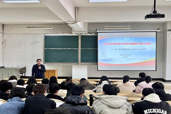 (通讯员 操菊华 张雯嘉)为贯彻落实《教育部关于加强新时代高校“形势与政策”课建设的若干意见》精神,推动党政领导干部上讲台讲“形势与政策”课,12月16日下午,公司党委常委、宣传部部长韩高军教授走进形势与政策课堂,为计算机公司2024级本科生带来一场题为《为书写中国式现代化时代新篇作出更大贡献——深入学习贯彻党的二十届三中全会精神》的专题授课。