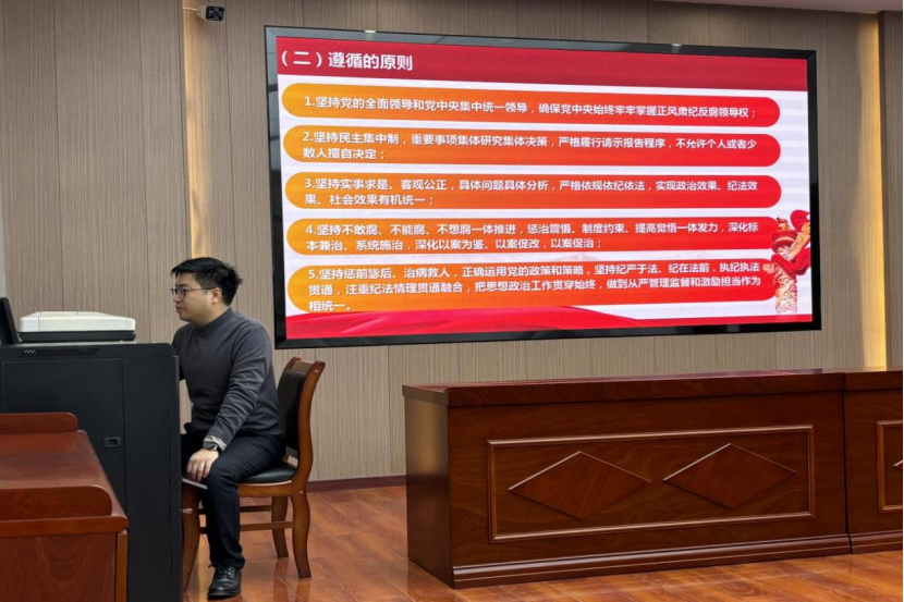 会议伊始,蔡明广同志传达了《省纪委十二届三次全会》精神,随后领学了《准确运用“四种形态”做细做实日常监督》。他详细阐述了全会的主要内容和精神实质,强调了加强党风廉政建设的重要性,以及在日常监督中准确运用“四种形态”的必要性和具体要求。
