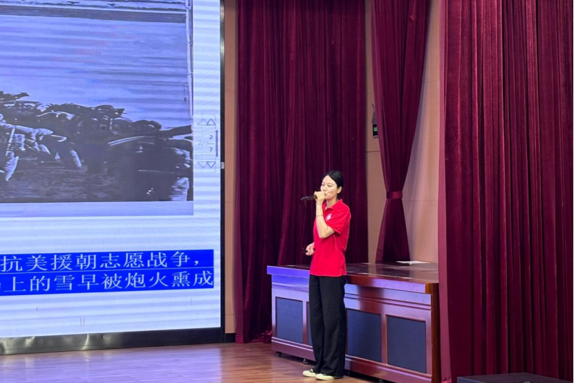 “第二代”宣讲人——yl7703永利“红心向党”宣讲团成员金冉同学,接过宣讲的接力棒,以青春的视角深刻诠释红色精神的时代价值。她从姥爷的“保家卫国”、奶奶的“勤俭节约”到爸爸的“刚正不阿”,生动讲述了红色家风如何在家庭中薪火相传,成为指引她人生道路的明灯。