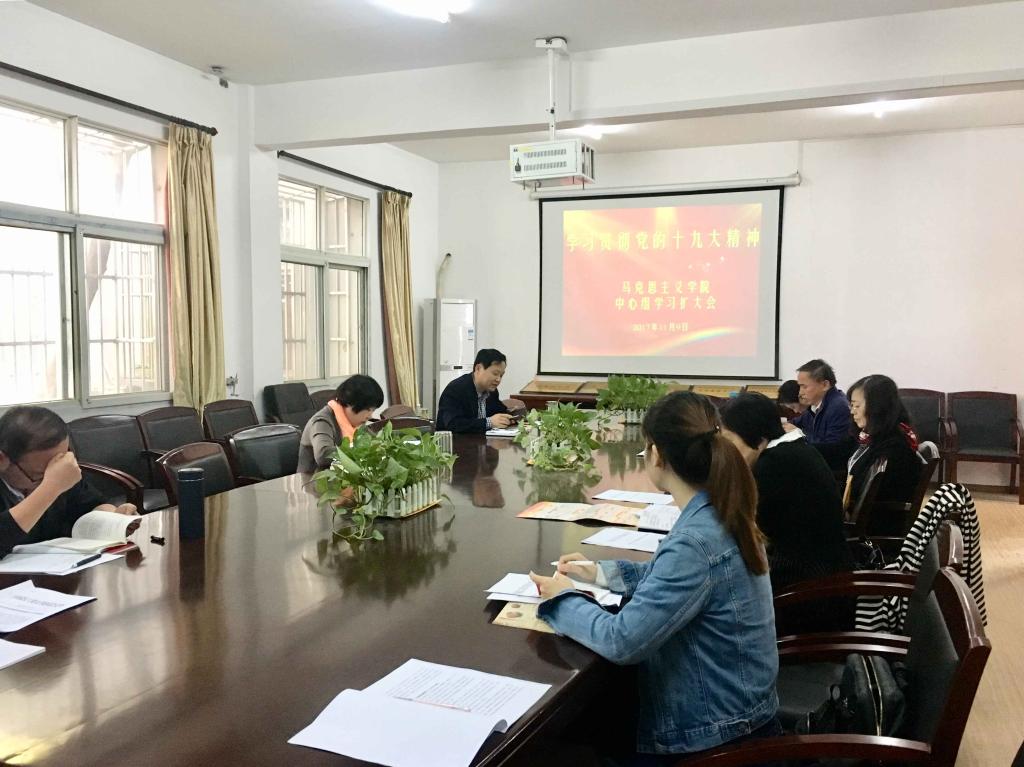 公司党委委员、副经理何景春指出从中国共产党历史发展長河来看,十九大的召开意义重大,对于党的理论、党的实践、党自身的建设都有承前启后、继望开来的意义。十九大的召开对于我们思政课的教肓教学改革堤出了新要求,我们要按照统一部署积极做好十九大精神“五进”工作,及时呈现十九大精神理论价值、理论贡献和实践作用。十九大的召开对我们yl7703永利的科研和团队建设工作也提供了难得的历史机遇,我们要围绕十九大报告中的新思想、新观点开展学术研究,形成新的学科方向,建立新的学术团队,产生一批有分量的研究成果,打造我们马学科发展新的增長点。要动员公司研究生积极关注和投身十九大精神的学习和研究,从十九大报告中的新思想、新观点中寻找自己科研选题,确立学术研究的主攻方向。