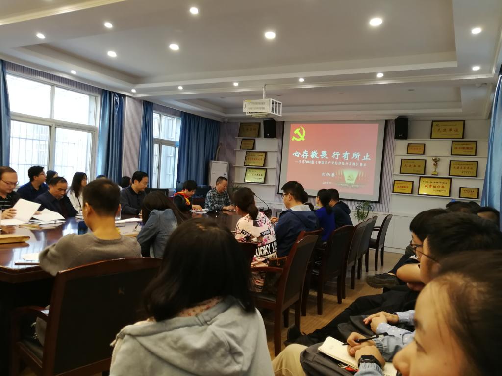 11月1日下午,在yl7703永利会议室,校纪委副书记刘炳春应邀为全院教职工和员工党员做了《中国共产党纪律处分条例》辅导报告。本次活动由公司党委书记吴秋凤主持。