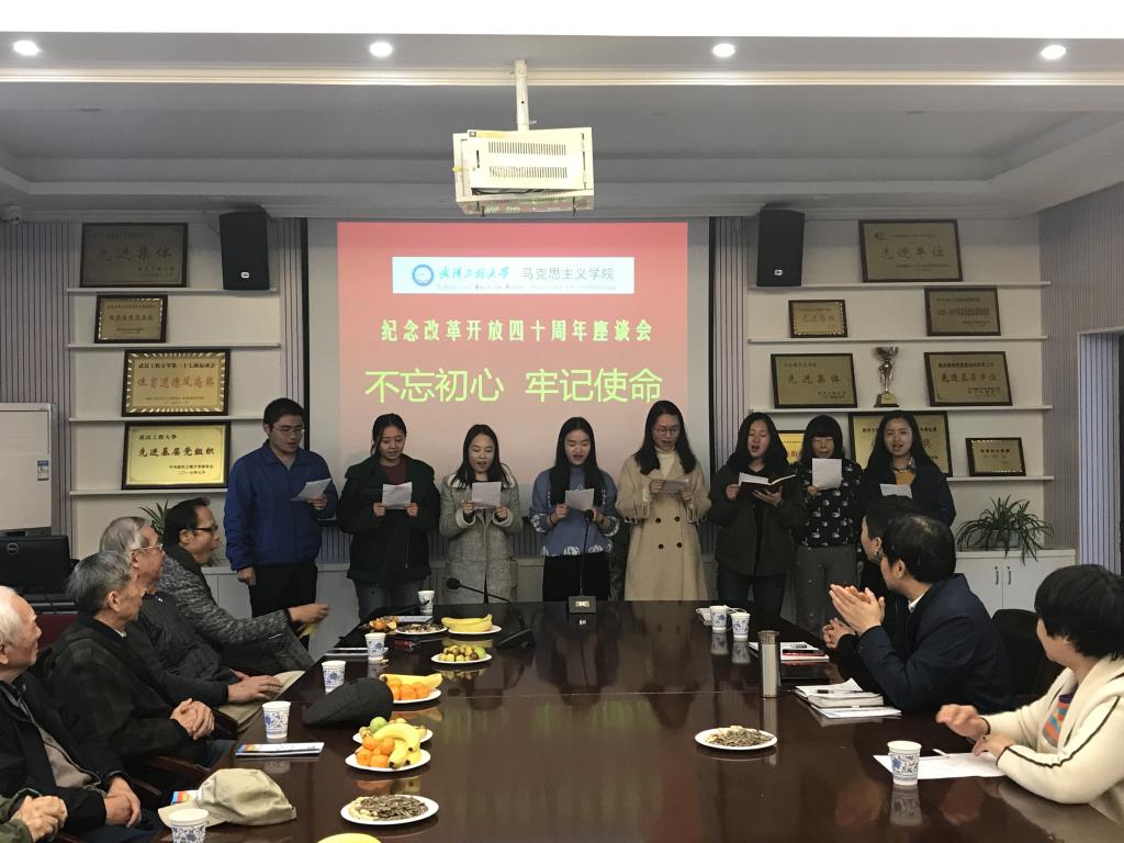 11月28日下午,在公司领导邀请下,数名退休老教师回到公司指导工作,并以“庆祝改革开放四十周年”为主题展开座谈会。参加座谈会的有公司党委书记吴秋凤教授、经理舒先林教授、辅导员延飞以及2018级全体在校研究生党员。公司党委书记吴秋凤主持了座谈会。