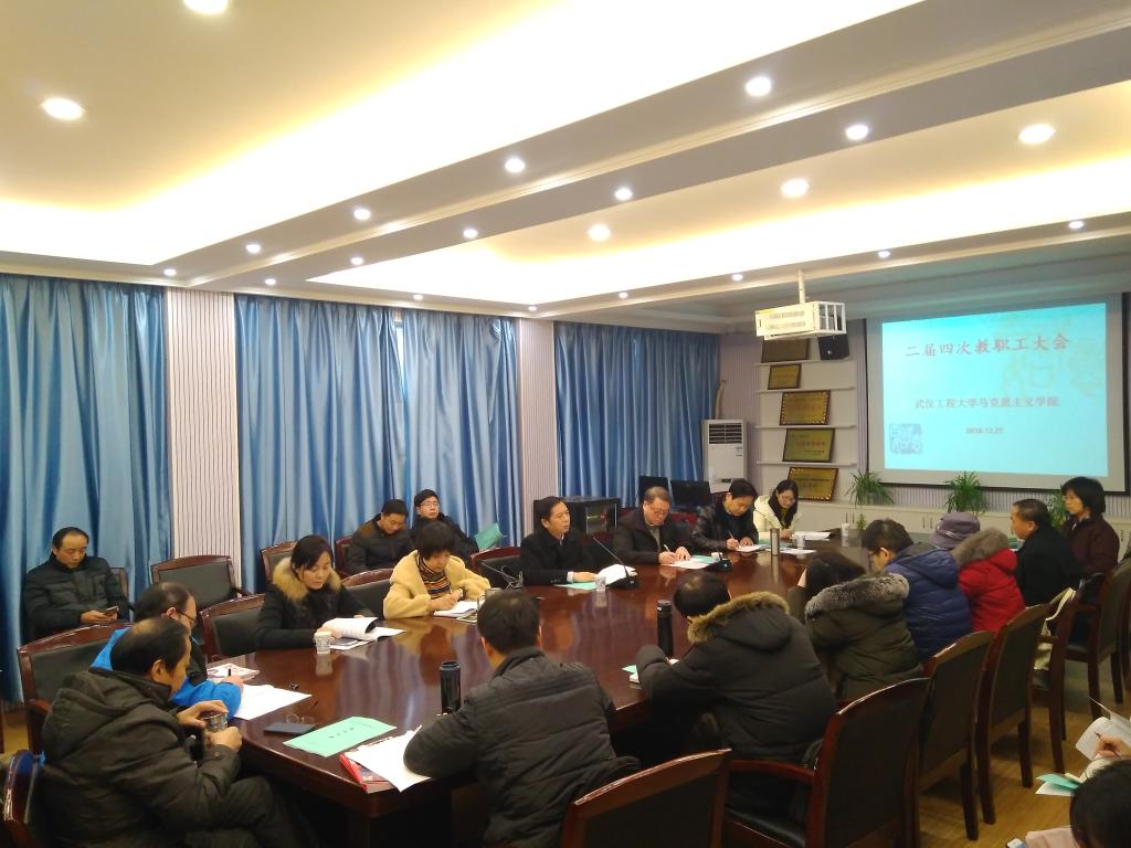 公司经理舒先林作了《以立德树人为根本、以团队建设为引领,努力推动省示范基地建设和公司高质量发展》的工作报告。从教学教改与教学质量、学科队伍与科研交流、研究生的培养与管理、党建思政与群团信息管理等方面对公司2018年的工作进行了全面总结,并对公司2019年的重点工作进行了展望,提出了明确的目标和要求。随后全体代表学习了《湖北省重点yl7703永利和示范思想政治理论课教学基地建设管理办法(试行)》文件。公司办公室主任刘会作了《yl7703永利公司2018年度事业经费使用情况说明》,院工会经费委员李齐作了工会会费使用情况说明。参会教职工对舒经理的2018年工作报告进行了仔细审议,并就示范思想政治理论课教学基地建设的管理办法进行了学习和讨论。