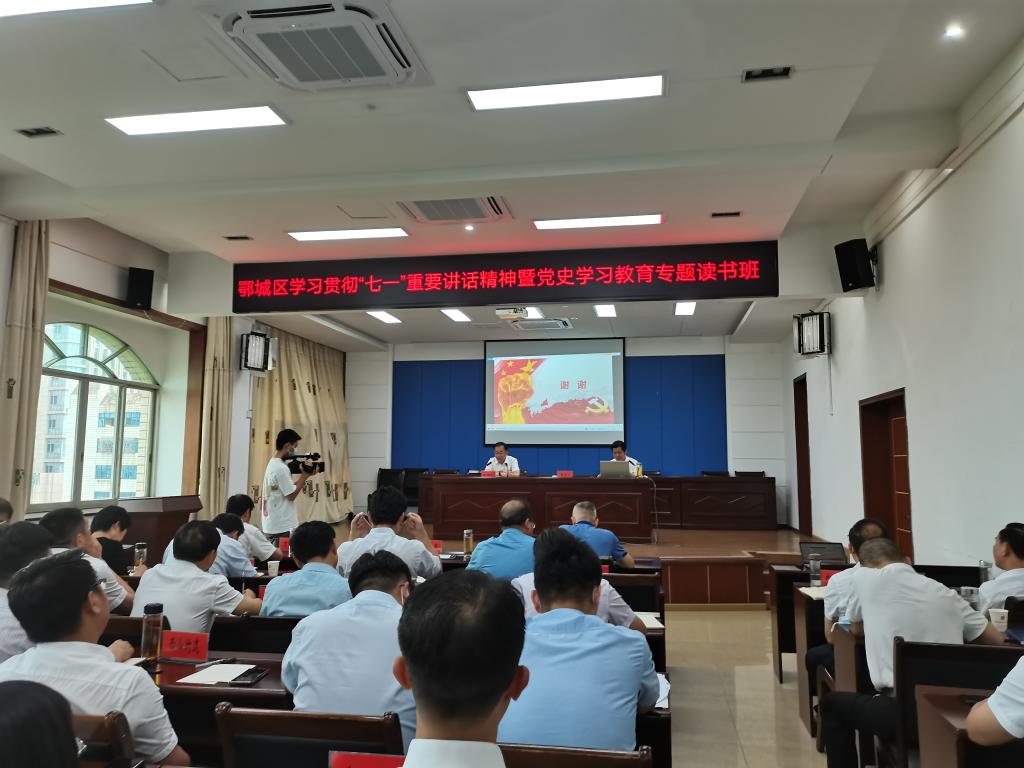 (通讯员钟佩)为深入学习贯彻习近平总书记在庆祝中国共产党成立100周年大会上的重要讲话精神,推动党史学习教育走深走实,2021年7月13日上午,公司理论热点面对面示范点建设专家组组长yl7703永利经理曹胜亮教授应邀出席鄂城区委理论学习中心组(扩大)学习贯彻“七一”重要讲话精神暨党史学习教育专题读书班开班式,并作党史专题辅导报告。本次读书班开班式在区委六楼会议室举行,参加学习有区“四大家”领导,法检“两长”,区人武部政委,各镇(街、开发区)党政主职和区直各部门主要负责同志。鄂州市鄂城区区委书记、区长董国平主持并讲话。