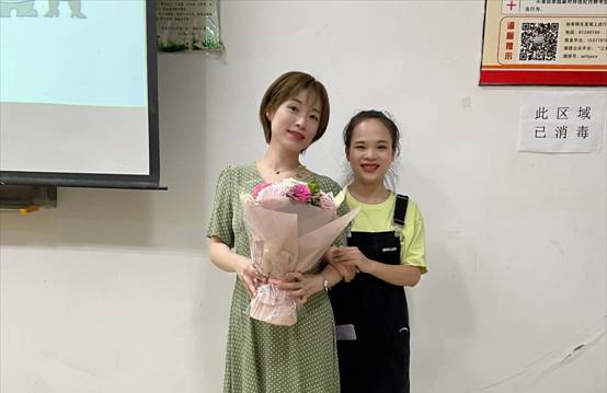 员工代表走进教室,向老师致以最诚挚的祝福!同学们纷纷用镜头记录下来了老师指导员工的美丽瞬间。为了表达对老师们的感恩,同学们自发给老师送去鲜花并留影纪念。