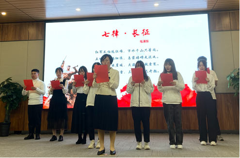 中央红军从江西瑞金出发,历经血战湘江、四渡赤水、巧渡金沙江等战役,总里程约为二万五千余里,最终在甘肃会宁会师。在对上述长征历史进行回顾后,周智年教授和员工代表通过颂读毛泽东同志的《七律·长征》再一次共同感悟了伟大的长征精神。