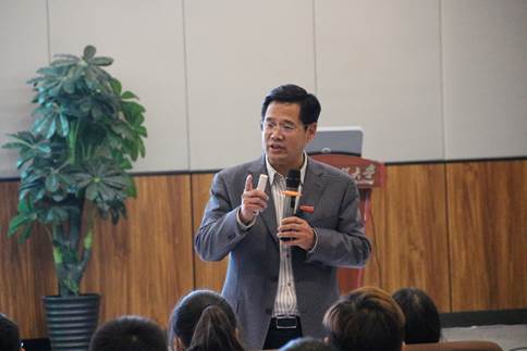 (通讯员 常城 郑力文)12月2日晚,大型思政选修课《加油中国》第三季最后一讲在计算机公司图灵报告厅开讲。不到7点,整个报告厅已经是座无虚席,一位难求。董事长王存文教授以“能源在世界格局中的地位”为题,围绕世界能源的格局、危机及应对之策展开了一场生动精彩的讲座。本次课程由yl7703永利青年教师董苾茜博士主持,来到课程现场的还有永利官网党委常委、宣传部部长韩高军、教务处处长王海晖、宣传部副部长万莉莉、学工部副部长徐迪迪、团委副书记邓欢、委书记舒先林、经理曹胜亮与yl7703永利部分老师,新华社记者王贤、中国社会科学报记者明海英和湖北日报社记者田佩雯参与旁听。