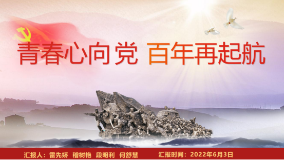 由陈俊老师和蔡明广老师指导的雷先娇、稽树艳、段明利、何舒慧四名同学组成的代表队以《青春心向党百年再起航》为题,从理想信念的内涵及重要性、崇高的理想信念、在实现中国梦的实践中放飞青春梦想三个方面,深入阐释理想信念的内涵,明确指出理想信念对老员工成长成才的重要意义,内容积极向上,极富教育意义。