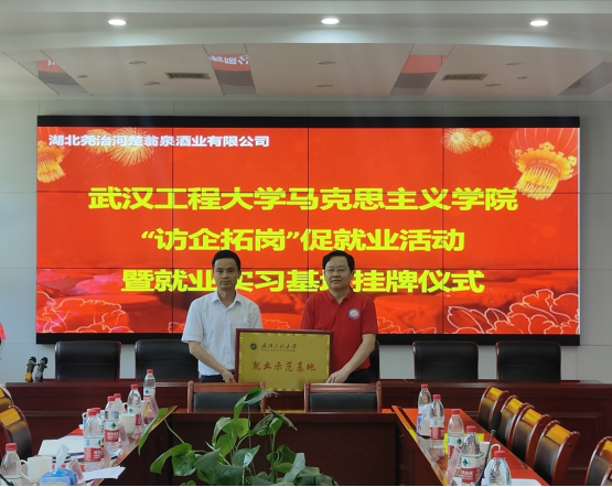 (通讯员:雷先娇)为贯彻落实教育部“访企拓岗”促就业专项行动方案实施要求,结合公司“下基层察民情解民忧暖民心”主题实践活动安排,7月8日,委书记舒先林、经理曹胜亮带领公司领导班子及部分师生一行赴保康县开展“访企拓岗”促就业活动,先后走访参观了湖北尧治河楚翁泉酒业有限公司及保康茶叶集团有限公司,并在现场举行了“就业实习基地”挂牌仪式。保康县团县委副书记姜建伟、湖北尧治河楚翁泉酒业有限公司董事长叶寿江、保茶集团董事长肖德雄陪同出席相关活动,公司领导班子和部分师生及部分企业员工代表参加活动。