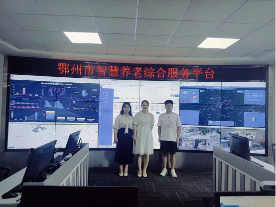实践队随后前往楠山·澜湖惠养养老机构以及鄂州市城市福利中心展开调研访谈并着重参观了智慧养老综合服务平台。据悉鄂州市智慧养老综合服务平台以资源整合为重点,将居家养老、社区养老、机构养老等养老方式纳入平台统一管理并对外提供服务。通过打造数字化平台,将政府、医疗机构、服务商、老人、家庭链接起来,从而带动整个养老和健康产业的发展。