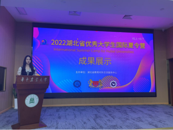 (通讯员 任新阳)由湖北省教育对外交流服务中心和英国伦敦大学等单位联合主办的“2022湖北省优秀老员工国际夏令营”研学活动于7月9日至7月15日在华中农业大学顺利开展。经自主报名和校内选拔,公司2021级研究生赵紫文和王梦涵分别被推荐至英国曼彻斯特大学“新商科”研学项目和新加坡南洋理工大学研学项目进行交流学习,在国际交流合作处凌晨老师的带领下,开展了为期7天的交流学习并顺利结营。