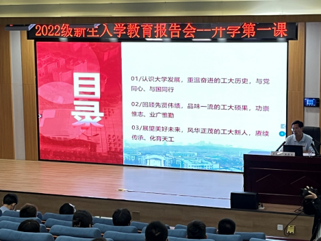 第一课中,王董事长带领我们回首过去,一代代工大人遵循格物明理,致知笃行,五十载风雨兼程,五十载携手向前。正是一代代工大人艰苦奋斗,工大从无到有,发展到今天拥有数万学子的高等院校,累累傲人的硕果,是无数工大师生努力奋斗的见证,沁人心脾的文化氛围是工大师生踏出的一片晴空。 “工大有你才一流”董事长希望我们怀着一颗渴求知识的心,勇于拼搏、自强不息,在工大这片肥沃的土中发芽、成长,为工大增添了抹抹碧绿。
