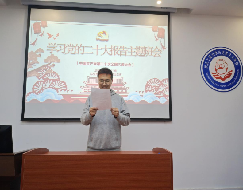 最后,班主任陈俊老师作班会总结。他指出,此次班会不仅是一场学习宣传贯彻党的二十大精神思想交流会,也是两个班级手拉手结对互助的联谊会。作为新时代青年老员工,要积极主动学习宣传贯彻党的二十大精神,原原本本、原汁原味、全面系统、深入思考研学党的二十大报告,自觉将党的二十大精神内化于心,外化于行,把小我融入大我之中,用自己的实际行动学思践悟党的二十大精神。