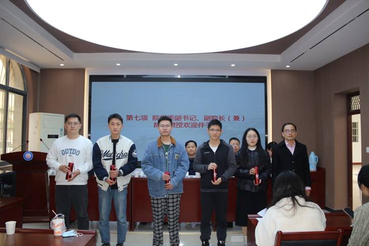 第七项,公司党委副书记、副经理(兼)陈俊为新同学代表赠授欢迎伴手礼。