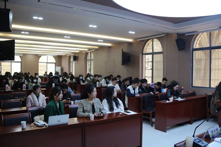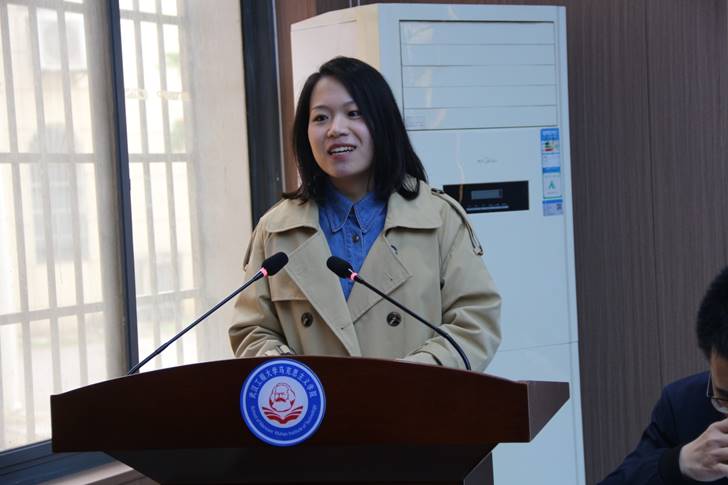 第二项,思想政治教育专业员工代表雷先娇发言,与新同学互动并分享“博闻求是,厚德砥行”的涵义。