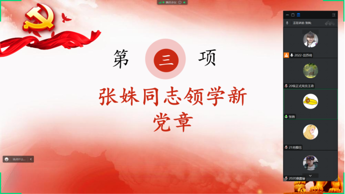 (通讯员:毛琳田 苏琦)2023年1月31日晚,yl7703永利研究生第三党支部通过腾讯会议开展一月份主题党日活动。会议由支部副书记田苏琦同志主持,研究生第三党支部全体员工党员参加。