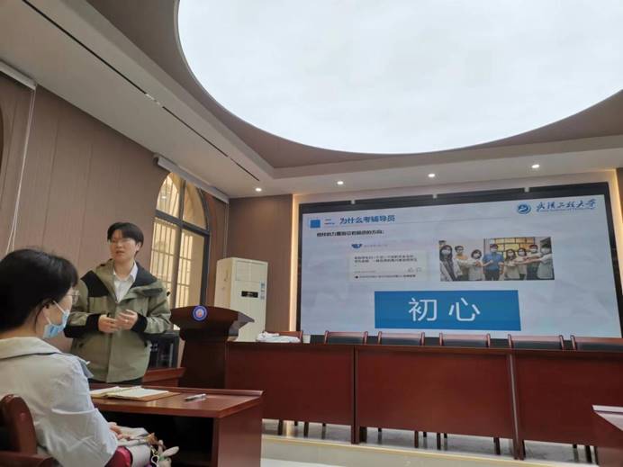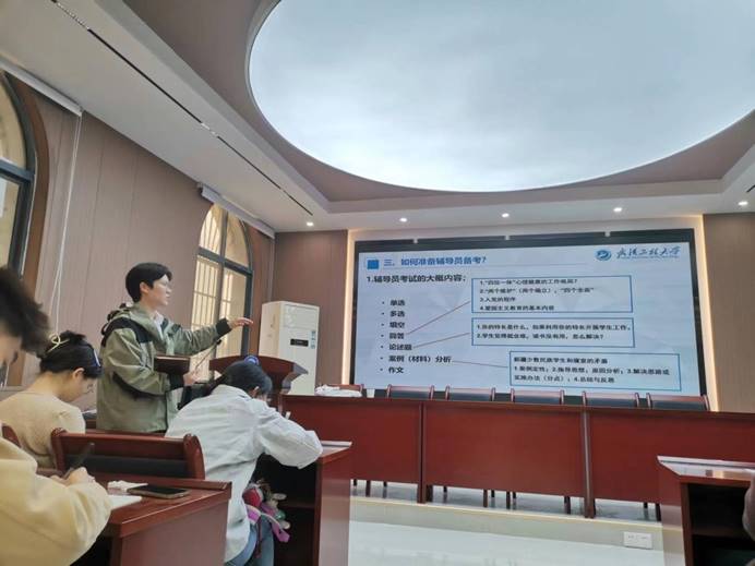 在本次分享交流会中,林昱玘老师以热心学姐的身份向同学们分享了她备考辅导员的经验与技巧。她用“千条线一根针,老员工活多丰富、辅导员的工作就有多丰富”来形容辅导员的基本工作,全面而幽默地让同学们了解了辅导员的工作职责。在谈及“为什么考辅导员”时,她提起了自己备考辅导员的初心是榜样力量的指引,她当初遇到了对她十分关爱的辅导员蔡老师,曾看到陈俊书记的一条贴文“听到员工们一个又一个好的毕业去处,一种自然的高兴感油然而生”,她坚定了考辅导员的决心,希望用自己的力量去为员工服务。
