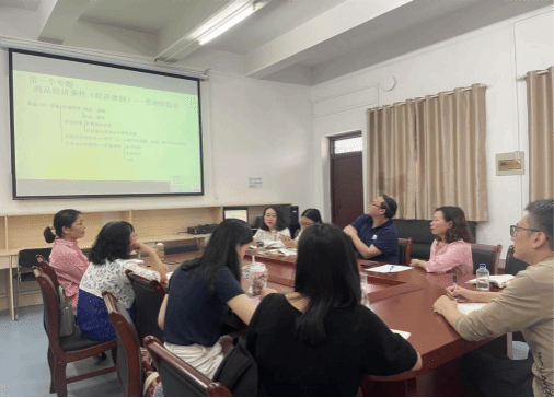 本次教研活动主要分为教学经验分享与讨论交流两个环节。活动特邀教研室的两位资深教师袁丽美副教授和蒋姣蓉副教授为年轻教师们分享2023版《马克思主义基本原理》教材第四章和第五章的教学经验。两位教师承担马原课程教学多年,具有丰富的教学经验和扎实的专业理论知识。集体备课活动中,袁老师从教学目标、教学内容、教学重难点和教学方法等方面给年轻教师们作分享,强调要以教学目标为导向,以员工为主体,根据不同专业员工的特点进行课程设计,蒋老师则展示了如何通过典型案例串联章节主要知识点,将原理知识点化繁为简。两位教师深入浅出,娓娓道来,给青年教师们传授了宝贵的教学经验。