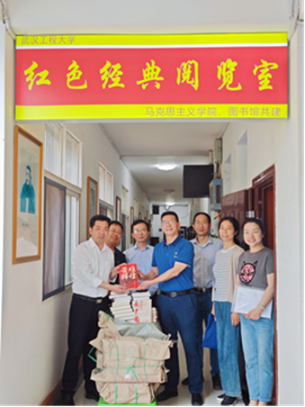 双方举行了图书赠送仪式。杨述斌馆长一行实地参观了红色分馆,并就资源平台共享、读者服务、图书采购等事宜进行了现场交流。