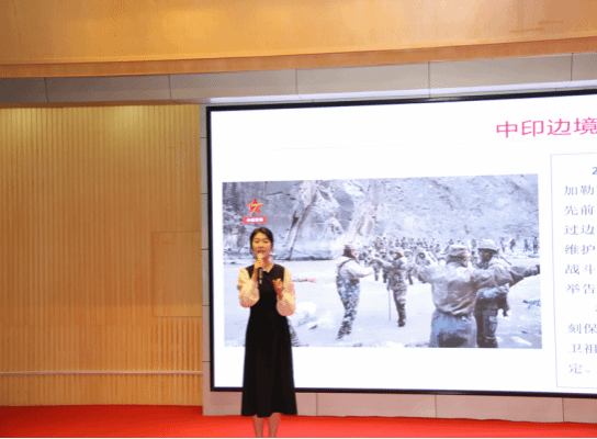 刘蜜以《向实现建军一百年奋斗目标迈进》为主题,解读了建军一百年奋斗目标,阐述了为什么要推进国防和军队现代化建设,以图文并茂的形式展示了新时代以来的强军成果。
