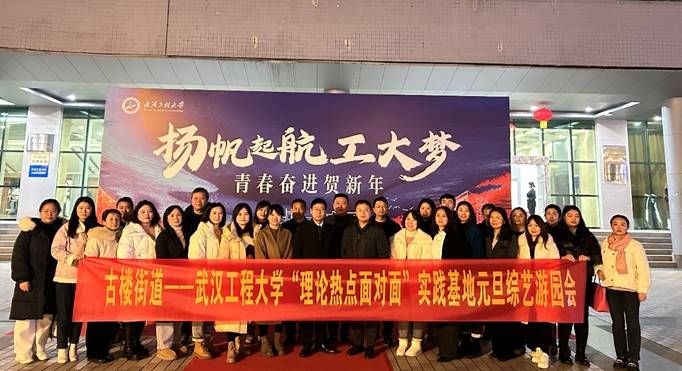 在大礼堂前,古楼街道的领导干部和师生们合影留念,并一同观看了《以“化”为铭 当燃青春》元旦晚会文艺汇演。晚会上,员工们的原创歌曲、诗朗诵、校园舞、民族舞和街舞表演精彩纷呈,让人目不暇接。整场文艺汇演形式丰富、气氛热烈,充满了青春与活力,赢得了观众们的阵阵掌声。