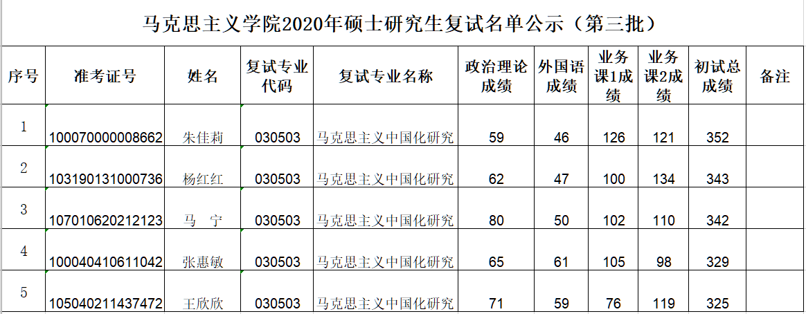 2020年硕士研究生成绩公示(第二批调剂复试)