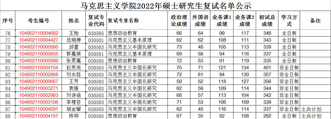 2022年硕士研究生复试名单公示