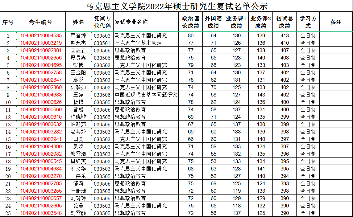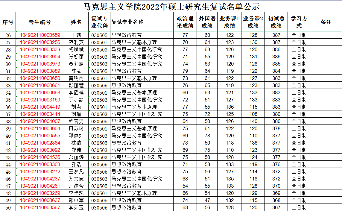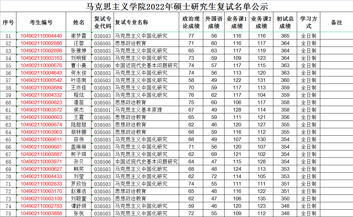 2022年复试成绩公示