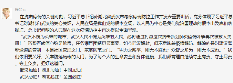 2017级研究生党支部党员叶梦雯同志:“90后”、“00后”不是所谓“温室里的花朵”,当祖国和人民需要时,他们也能用自己年轻甚至稚嫩的肩膀,撑起一片天。作为在祖国繁荣强盛时期长大的一代人,爱国之情早已深深地扎根在这一代青年的心里。面对来势汹汹的疫情,他们把祖国的安危看得比自己的生命还重要,把浓浓的爱国之情化作坚定的报国之行,“武汉加油!中国加油!”成为了新时代中国青年的最强音。同舟共济、守望相助、共克时艰,中国青年将自己的命运与祖国人民的安危紧密相连,青春为人民燃烧,青春为祖国闪耀。