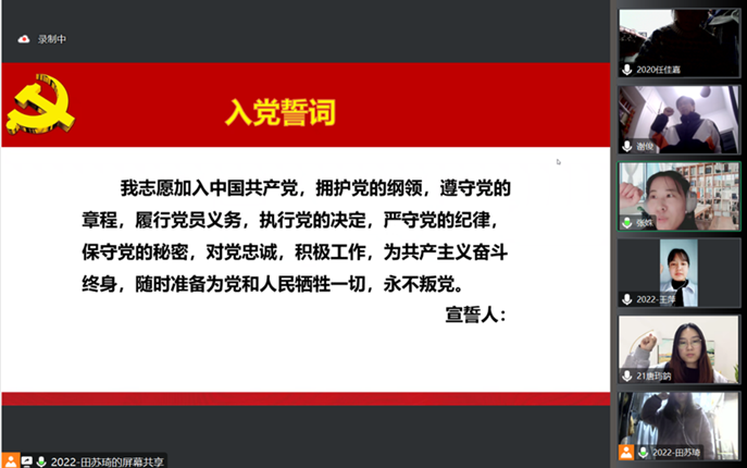 接着,在党支部副书记田苏琦同志的带领下,全体党员一起重温了入党誓词;